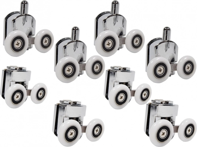 Grâce à une fabrication de qualité avec des roulements précis, les roulettes assurent une ouverture et une fermeture des portes de douche fluides et silencieuses. L'ensemble contient huit roulettes - quatre supérieures et quatre inférieures - soutenant la stabilité des portes.