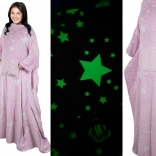 Cette couverture d’intérieur avec manches allie chaleur, liberté et design ludique. Le motif fluorescent brille dans l’obscurité après exposition à la lumière, pour le plus grand plaisir des enfants et des adultes. La taille universelle XXL s’adapte à la plupart des silhouettes et ne glisse pas comme les couvertures ordinaires.
