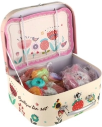 Chaque petite fille peut maintenant servir du thé et du café à ses amies et à ses peluches avec ce charmant ensemble de thé. L'ensemble est rangé dans une valise pratique, ce qui en fait un choix idéal pour jouer en voyage.