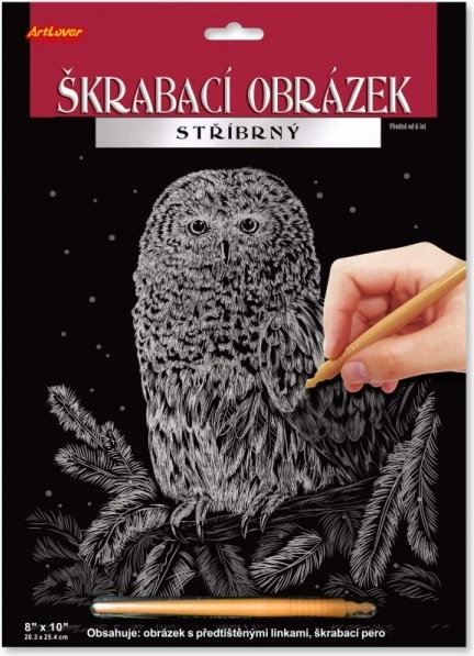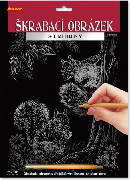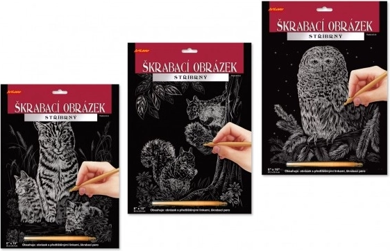 - 1× image avec fond argenté et couche noire, 1× stylet à gratter en plastique