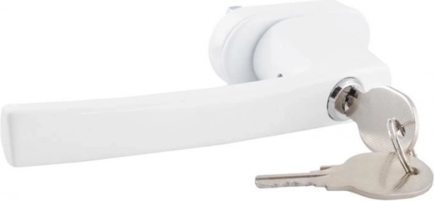 La poignée est fabriquée dans une combinaison résistante de métal et de plastique, avec un aspect blanc épuré et une prise en main confortable. L’installation est rapide et réalisable soi-même – tout le nécessaire est fourni, y compris les vis et 2 clés.