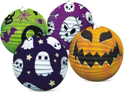 Une lanterne Halloween élégante en forme de boule de 25 cm de diamètre illumine toute fête, garden-party ou défilé aux lanternes. Grâce à sa construction pliable, elle est légère, facile à suspendre et crée en un instant une ambiance effrayante. Au choix 4 versions Halloween différentes avec citrouille, fantôme, crânes et araignée. Idéale comme décoration suspendue pour l’intérieur comme pour les événements extérieurs couverts.