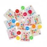 Le jeu éducatif Couture de boutons est conçu pour développer la motricité fine et apprendre aux enfants à reconnaître les couleurs et à compter. Le set comprend :