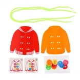 Les enfants exercent leurs compétences motrices en cousant des boutons sur des vestes.