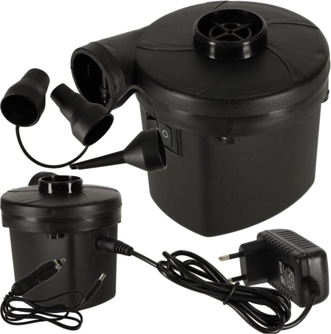 Pompe électrique compacte et puissante idéale pour gonfler et dégonfler rapidement les matelas à la maison ou en voyage. Parfait compagnon pour un camping et des vacances confortables.