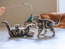 Les plumes colorées sont douces et incitent les chats à interagir.
