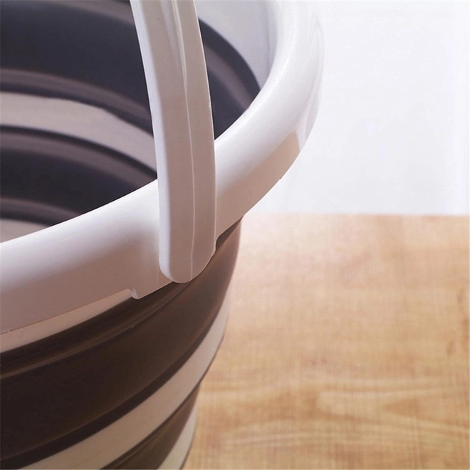 Le seau pliable 10 l est fabriqué en silicone robuste et épais, renforcé sur le pourtour pour une stabilité accrue. Le bord supérieur et le fond sont en plastique rigide, ce qui permet au seau de garder sa forme et d’être facile à manipuler.
