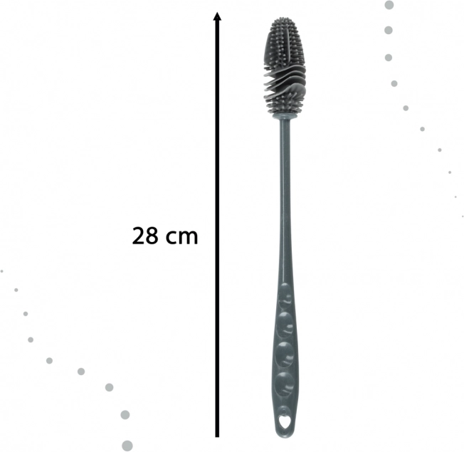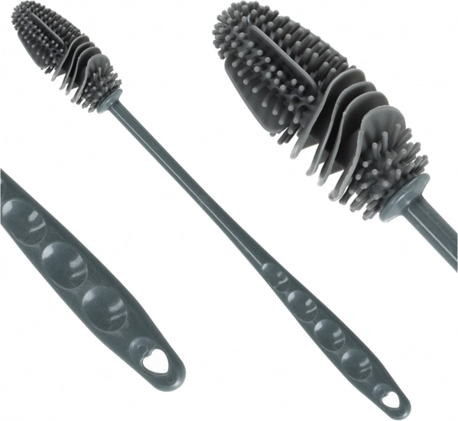 Idéale pour nettoyer les bouteilles, les verres et autres récipients étroits. La construction flexible s'adapte à différentes formes et tailles.