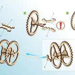 Le modèle est entraîné par un moteur à élastique et propose trois modes : « park », « drive » et « sport », dans lequel le tracteur démarre à pleine puissance. Avec un entretien approprié (lubrification de certaines parties à la cire), vous profiterez d’un fonctionnement fluide et d’une longue durée de vie. Cette maquette développe la motricité fine, la patience et la compréhension de la mécanique.