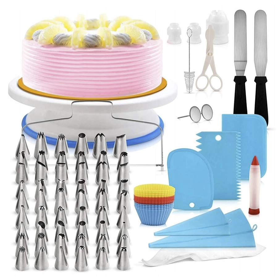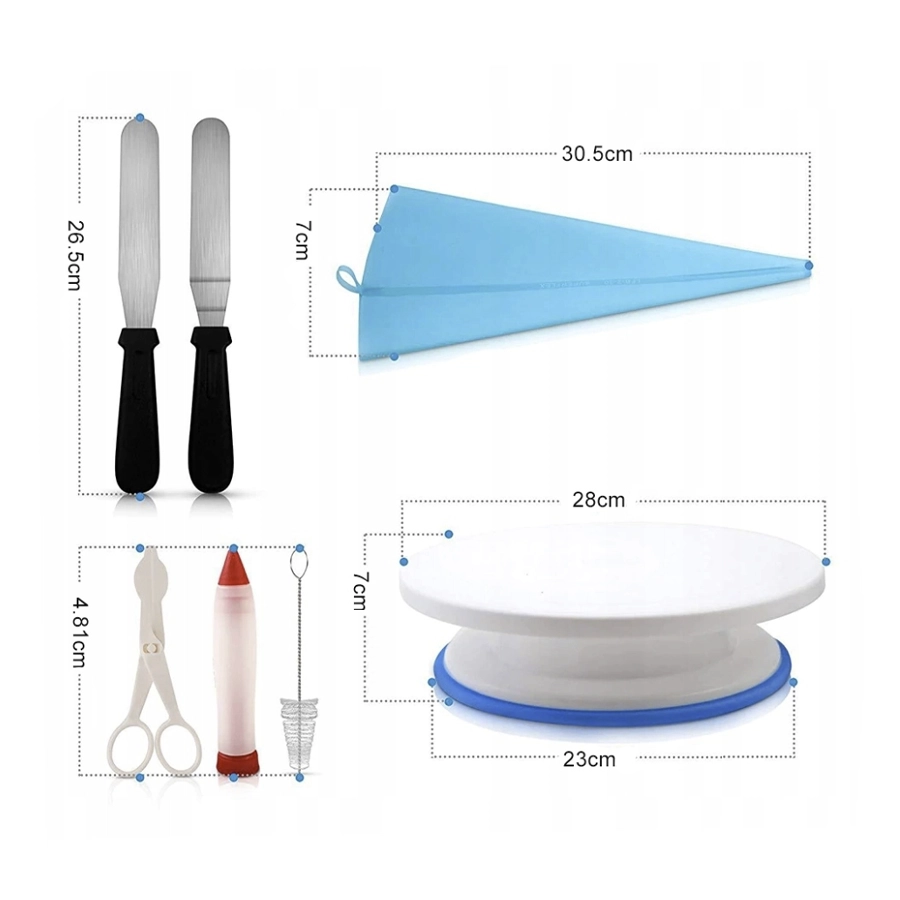 Un ensemble très complet et soigné pour décorer vos gâteaux préférés, biscuits, cupcakes, muffins, etc. Un kit professionnel qui conviendra aussi bien aux débutants à la maison pour la préparation de gâteaux et de pâtisseries pour les anniversaires, fêtes de prénom ou autres occasions, qu’aux cuisiniers confirmés. Fabriqué en plastique, silicone et acier inoxydable de haute qualité.