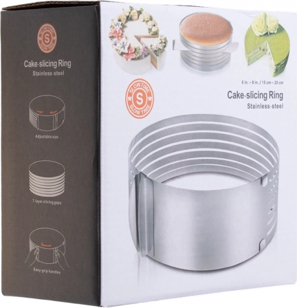 L'anneau permet de régler le diamètre entre 15 et 20 cm, offrant une flexibilité accrue à l'utilisation pour différentes tailles de gâteaux.