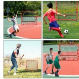 Le but d'entraînement Hengxing Multi Rebond Net est un équipement idéal pour les petits sportifs souhaitant passer activement leur temps libre tout en améliorant leur condition physique. Il est fabriqué avec un cadre en acier robuste de couleur rouge et un filet en nylon résistant, garantissant une longue durée de vie. Il est livré avec quatre piquets pour la stabilité et un réglage à quatre niveaux de la profondeur du filet.