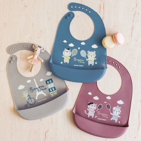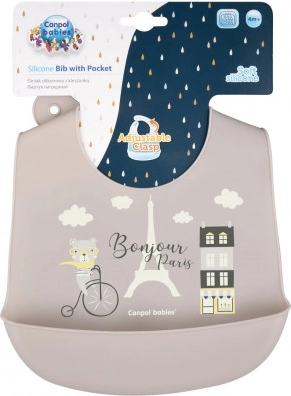 Canpol babies Bavoir en silicone avec poche BONJOUR PARIS beige