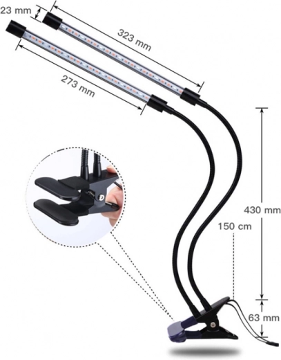 La pince robuste économise de l’espace et maintient la lampe fermement au bord d’une table ou d’une étagère. Idéal pour la culture dans de petits intérieurs.