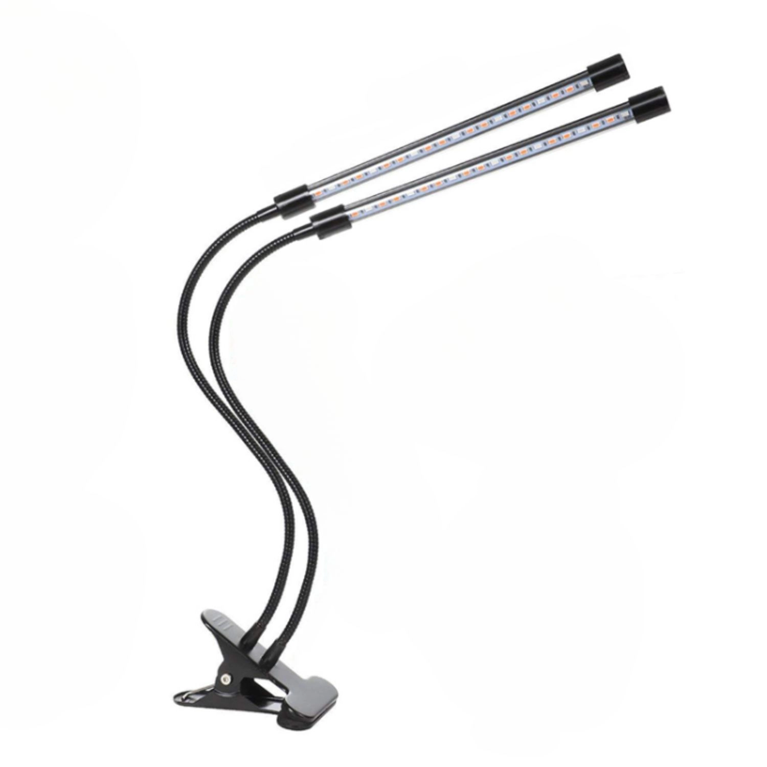 Deux têtes réglables indépendamment avec cols de cygne flexibles dirigent la lumière exactement vers les feuilles et les semis, que ce soit sur une étagère ou un appui de fenêtre.