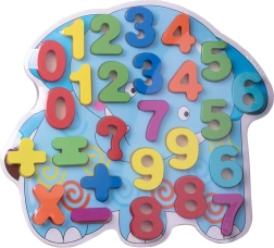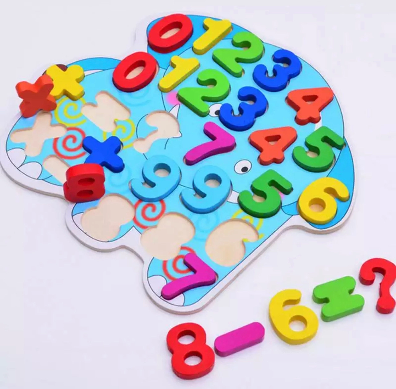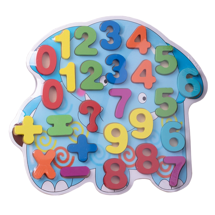Puzzle en bois coloré en forme d’éléphant avec les chiffres 0–9 et des symboles mathématiques, idéal pour l’apprentissage précoce. Grâce à ses pièces épaisses, il est facile à saisir pour les enfants, développe la motricité fine, la coordination œil-main et permet d’apprendre naturellement à compter et pratiquer l’arithmétique de base. Un jouet sûr et amusant pour les tout-petits.