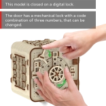 Le coffre-puzzle 3D de Wooden City est un cadeau idéal pour les amateurs d’énigmes et de beaux designs. Ce modèle fonctionnel reproduit le mécanisme d’un coffre-fort bancaire avec une combinaison à trois chiffres, modifiable à tout moment. Le coffre comprend aussi une fonction secrète pour vous aider en cas d’oubli du code. Son look est complété par une poignée pour un transport aisé et un espace à étagères à l’intérieur.