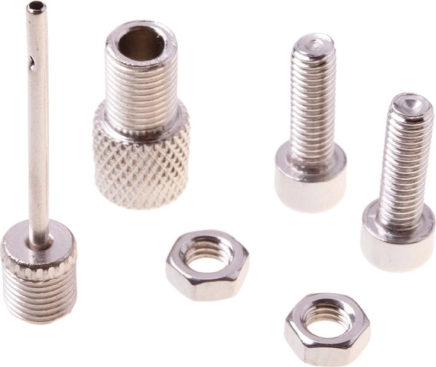 Kit de réparation vélo très pratique et compact, avec une pompe métallique très robuste, équipée d’un tuyau et d’un manomètre.