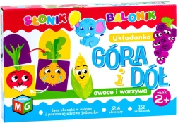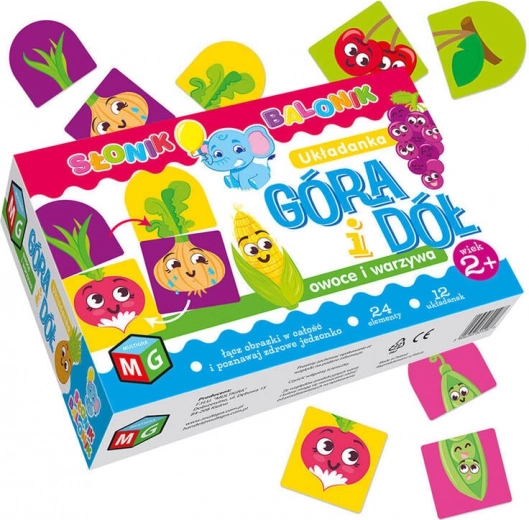 Le jeu En haut et en bas : fruits et légumes est un premier puzzle idéal pour les enfants et leurs parents. L’objectif est de trouver les bonnes paires afin que la partie supérieure de l’image corresponde à la partie inférieure. Les fonds colorés facilitent l’orientation et aident à reconstituer plus rapidement l’image complète.