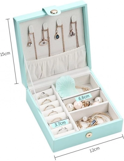 Parmi les effets personnels de chaque femme, les bijoux occupent une place particulière. La boîte à bijoux est un indispensable accessoire fiable pour ranger vos objets précieux. Des compartiments et des tiroirs séparés offrent un espace de rangement parfait pour les boucles d’oreilles, bracelets, montres, colliers, lunettes et autres trésors. La boîte à bijoux élimine le problème des chaînes emmêlées, des frottements et des rayures. Le couvercle comporte 3 crochets pour suspendre les chaînes. De l’autre côté, en dessous, vous trouverez de la place pour des boucles d’oreilles, des bagues, des bracelets, des montres et d’autres petits objets. Un rembourrage doux protège les bijoux précieux contre les rayures.