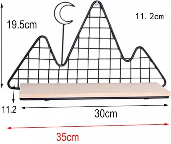 Cette étagère décorative en élégant noir allie fonctionnalité et design. Sa structure légère en fil métallique au motif montagnard apporte de la légèreté, tandis que la tablette en bois robuste supporte en toute sécurité de petites décorations, des bougies, des plantes, des cadres ou vos livres préférés.