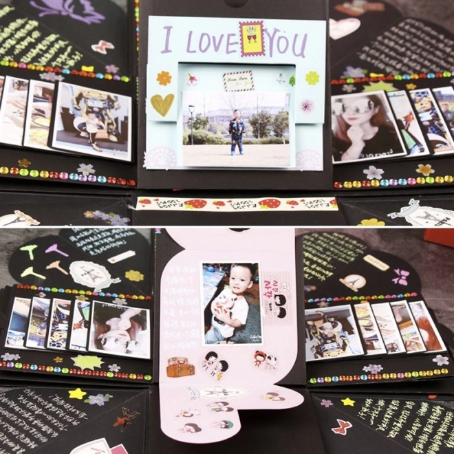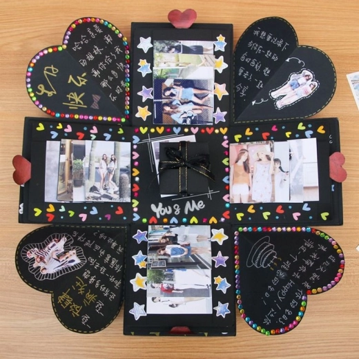 La boîte à explosion sera un cadeau extraordinaire pour pratiquement toute occasion et pour n’importe qui. Idéale comme cadeau de mariage, de Saint-Valentin, de fiançailles, d’anniversaire, de fête, pour grand-mère, grand-père, mère ou père. Dans la plus petite boîte, vous pouvez placer le bon présent, par exemple une bague, une montre ou un bijou. Vous pouvez décorer l’intérieur avec des photos, des vœux et tout autre élément qui vous plaît. Réveillez votre âme artistique et offrez un cadeau fait par vous-même.