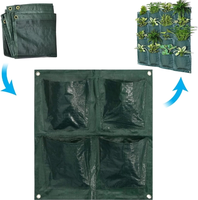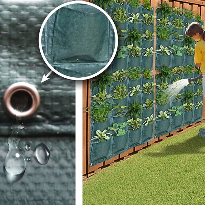 Le sac de plantation mural permet de planter dans chaque poche. L’intérieur des poches se remplit facilement de terre, puis vous y placez la plante. Il est conçu pour les plantes ornementales, les fraises ou toutes sortes d’herbes. Avec ce panneau mural végétal, vous créez une belle décoration de plantes vivantes. Vous pouvez l’installer partout : sur une cour, une clôture, un balcon ou une terrasse. En suspendant le sac au mur, vous gagnez beaucoup d’espace. L’ensemble du sac est fabriqué dans un matériau résistant aux intempéries et à l’humidité.