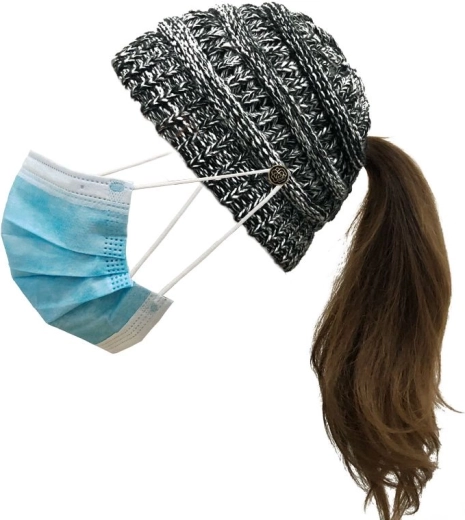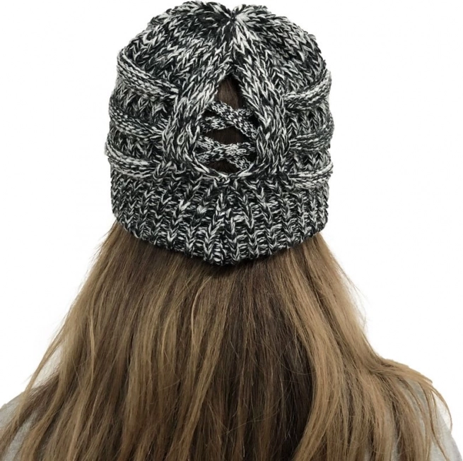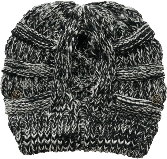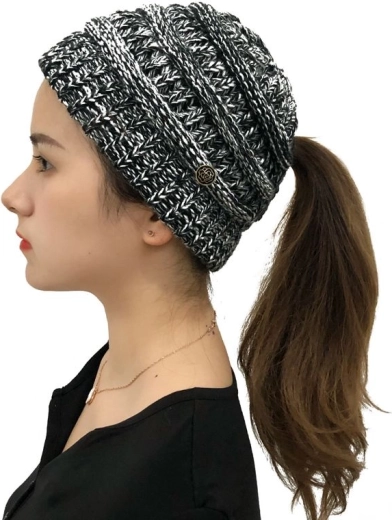 Bonnet d’hiver pour queue de cheval – blanc et noir