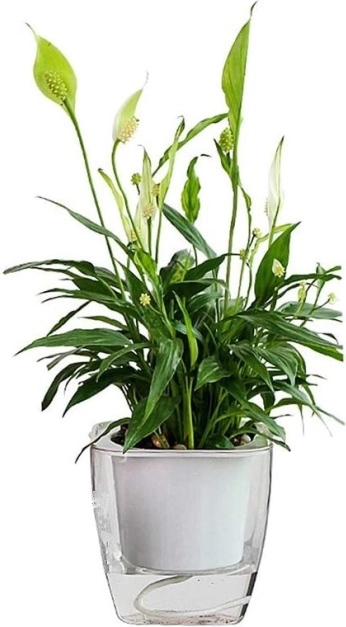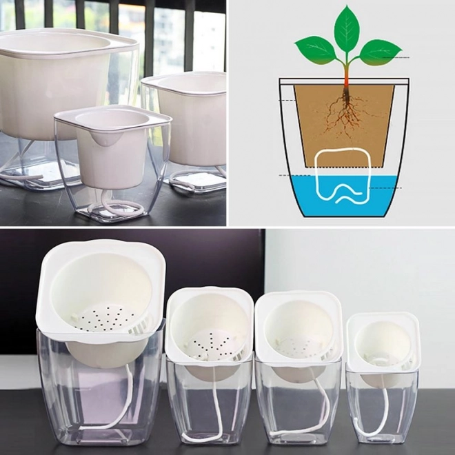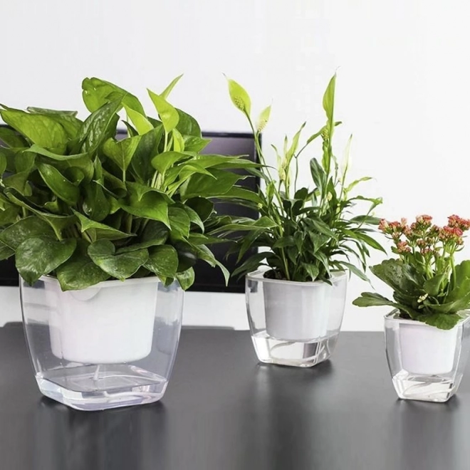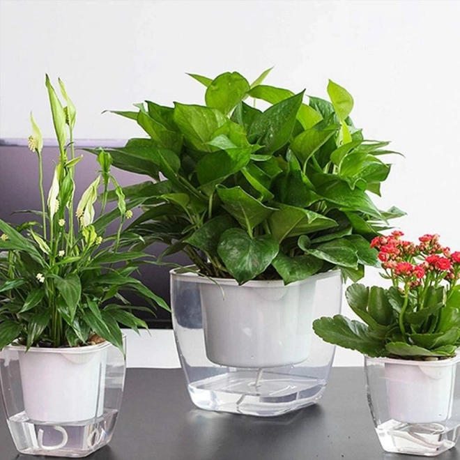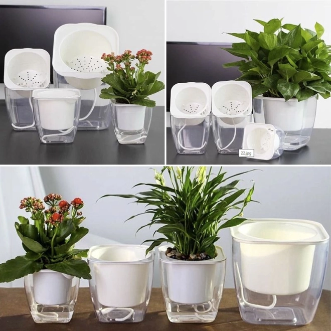 Pot décoratif avec système d’arrosage, grâce auquel vos plantes ont un accès permanent à l’eau. L’hydratation des plantes est maintenue à un niveau constant et approprié, sans risque de surarrosage ni de dessèchement. Le fonctionnement du système d’irrigation est très simple : il suffit de verser de l’eau au fond du pot, et des cordons spéciaux amènent à la plante la quantité d’eau adéquate. Grâce au design transparent, vous pouvez facilement contrôler le niveau d’eau au fond du pot.
