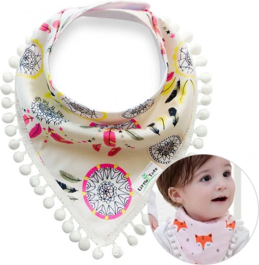 Adorable foulard pour enfant avec pompons, un excellent accessoire pour le cou, qui fonctionne aussi très bien comme bavoir pendant la poussée dentaire. La fermeture confortable à pressions n’irrite pas l’enfant et l’ourlet est également ajustable.