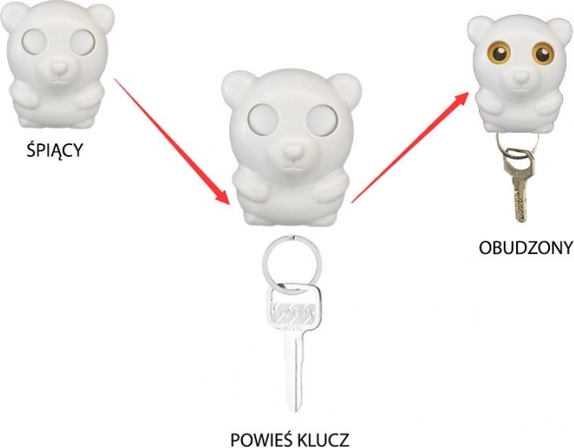 Porte-clés mural, idéal pour l’entrée, où vous pourrez suspendre vos clés en rentrant à la maison. Lorsque vous accrochez les clés, le petit ours ouvre les yeux pour veiller sur elles. En l’installant juste à la sortie, vous n’oublierez plus jamais vos clés : les yeux ouverts de l’ourson vous le rappelleront à coup sûr.