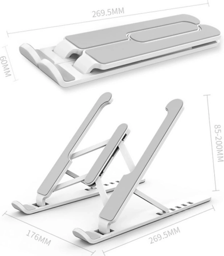 Un support pliable pratique pour votre ordinateur portable qui assure une ergonomie de travail correcte et favorise une bonne posture. Son design améliore le refroidissement efficace de l’appareil. Idéal pour travailler avec un ordinateur portable, une tablette, un smartphone ou des livres.
