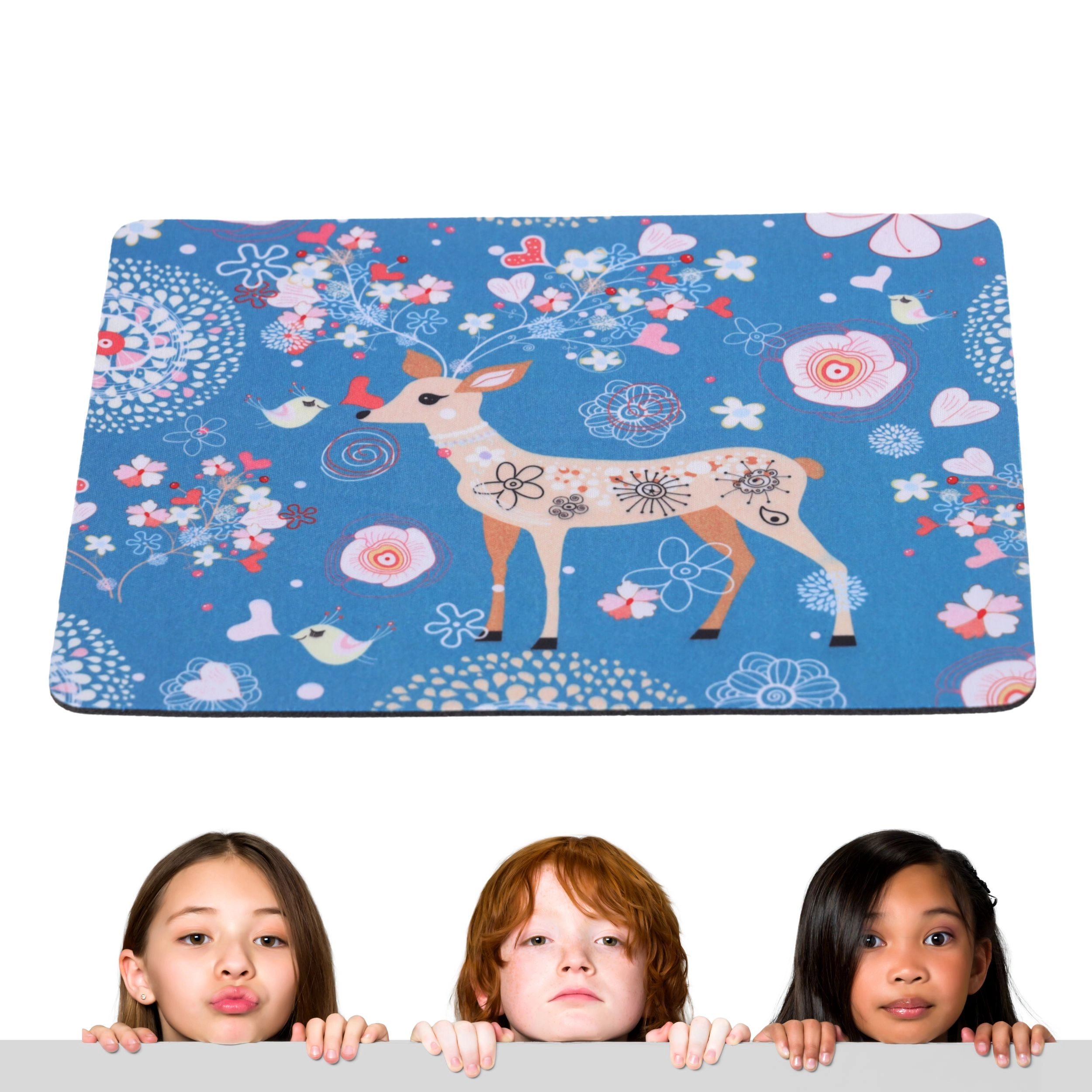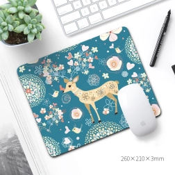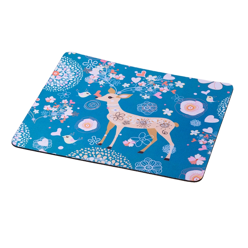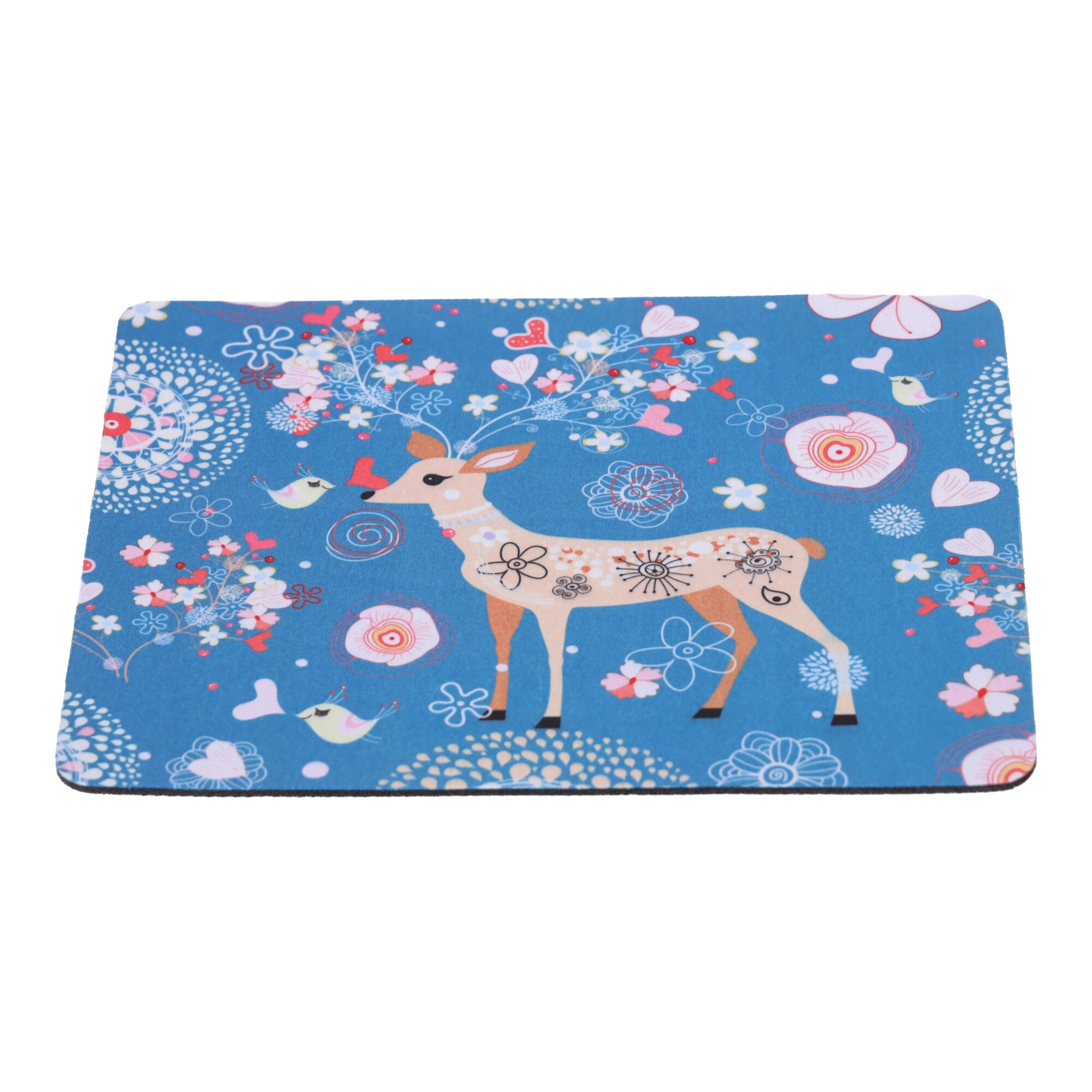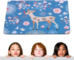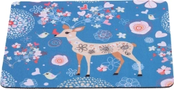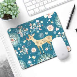 Ce tapis de souris décoratif, au fond bleu doux et au motif ludique de biche, d’oiseaux et de fleurs, embellira tout bureau. Sa surface textile assure un mouvement fluide de la souris et une grande précision du curseur, tandis que la couche inférieure en caoutchouc maintient le tapis bien en place.