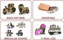 Le puzzle offre la possibilité d'être assemblé non seulement à partir de l'image, mais aussi en suivant les motifs au dos avec un design répétitif.
