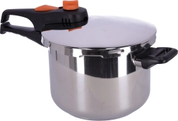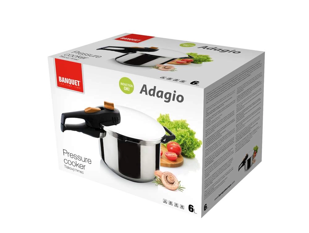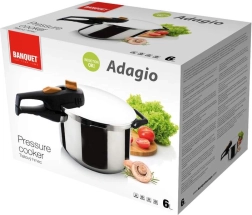 L’autocuiseur BANQUET ADAGIO d’une capacité de 6 litres accélère la préparation de vos plats favoris, préserve davantage de vitamines et minéraux et fait gagner du temps et de l’énergie. L’acier inox 18/8 robuste, une paroi de 1 mm et un fond sandwich de 5 mm assurent une chauffe stable et une longue durée de vie. La fermeture à baïonnette, l’orifice de travail et la sécurité anti-ouverture sous pression garantissent une utilisation sereine et confortable.