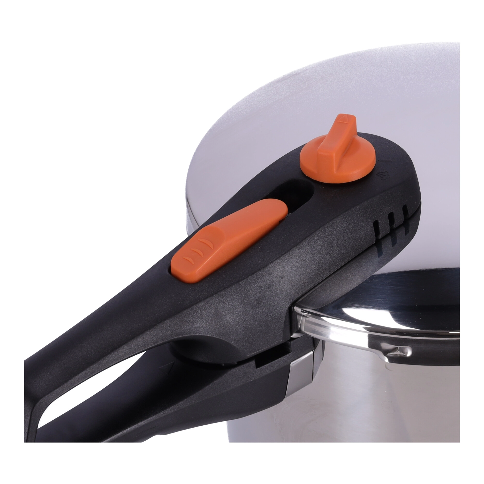 Grâce aux deux réglages de pression (0,6 / 0,9 bar), vous adaptez aisément la cuisson à divers ingrédients – des légumineuses à la viande en passant par les légumes. Le joint en silicone maintient efficacement la pression, les poignées ergonomiques offrent une bonne prise en main et la cocotte est compatible avec toutes les sources de chaleur, y compris l’induction.