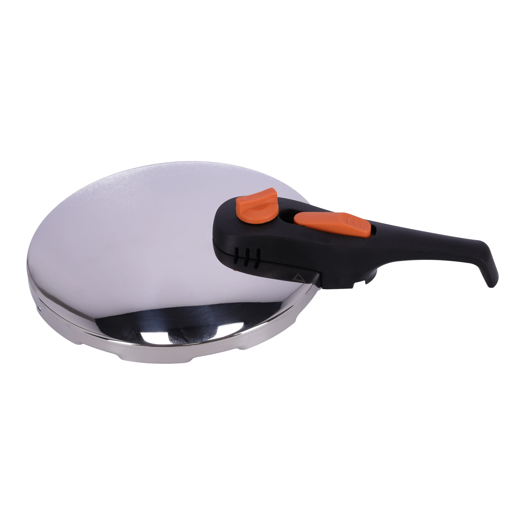 Couvercle à baïonnette robuste, verrou de sécurité empêchant l’ouverture sous pression et évacuation aisée de la vapeur pour une cuisson quotidienne sereine et confortable.