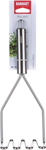 Presse-purée en fil métallique AKCENT 26 x 10 cm, fabriqué en acier inoxydable, conçu pour un usage professionnel comme domestique. Le presse-purée est doté d’un œillet pratique pour la suspension, se tient facilement en main et peut être lavé au lave-vaisselle. La gamme de vaisselle AKCENT répond aux exigences élevées des professionnels et convient également à un usage domestique. Un design simple et fonctionnel garantit une longévité intemporelle, durable et de haute qualité de tous les produits.