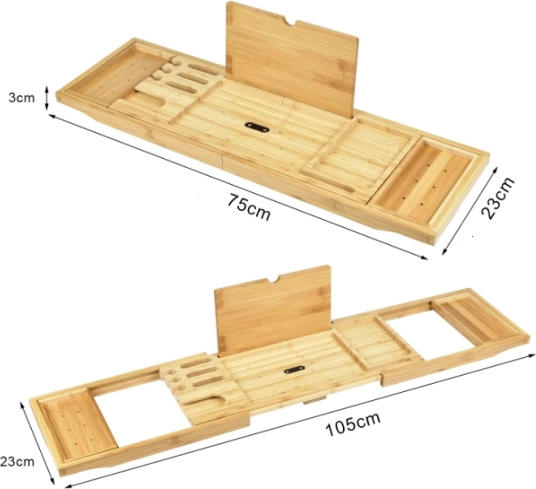 La solution parfaite pour créer une ambiance de spa dans votre salle de bain. L'étagère de baignoire en bambou est conçue pour s'adapter à différentes tailles et formes de baignoires. Elle est prête à l'emploi sans besoin de montage. Elle inclut aussi un espace pour tablette et un porte-verre à vin spécial, permettant une relaxation totale pendant le bain.