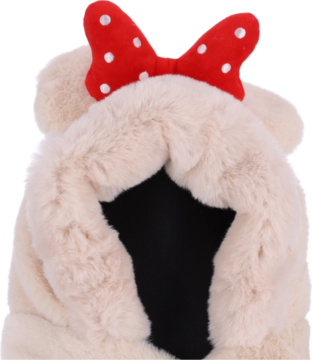 Bonnet en peluche avec écharpe pour enfants de 1 à 8 ans – beige avec nœud rouge