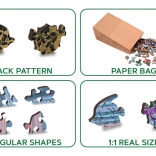Le puzzle est emballé dans un sachet en papier et une boîte, évitant complètement les plastiques, ce qui est respectueux de l’environnement.