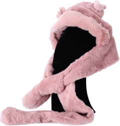 Adorable et pratique, ce bonnet enfant 3‑en‑1 combine capuche, écharpe et gants en un seul accessoire. En matière peluche toute douce, il garde les enfants au chaud lors des balades hivernales, au ski comme au patinage. Idéal pour les filles de 2 à 12 ans.