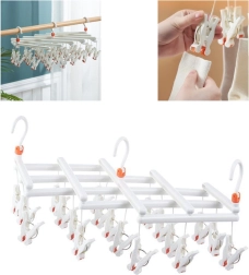 Cintre pliable en plastique pour vêtements avec pinces – 19 pinces - blanc