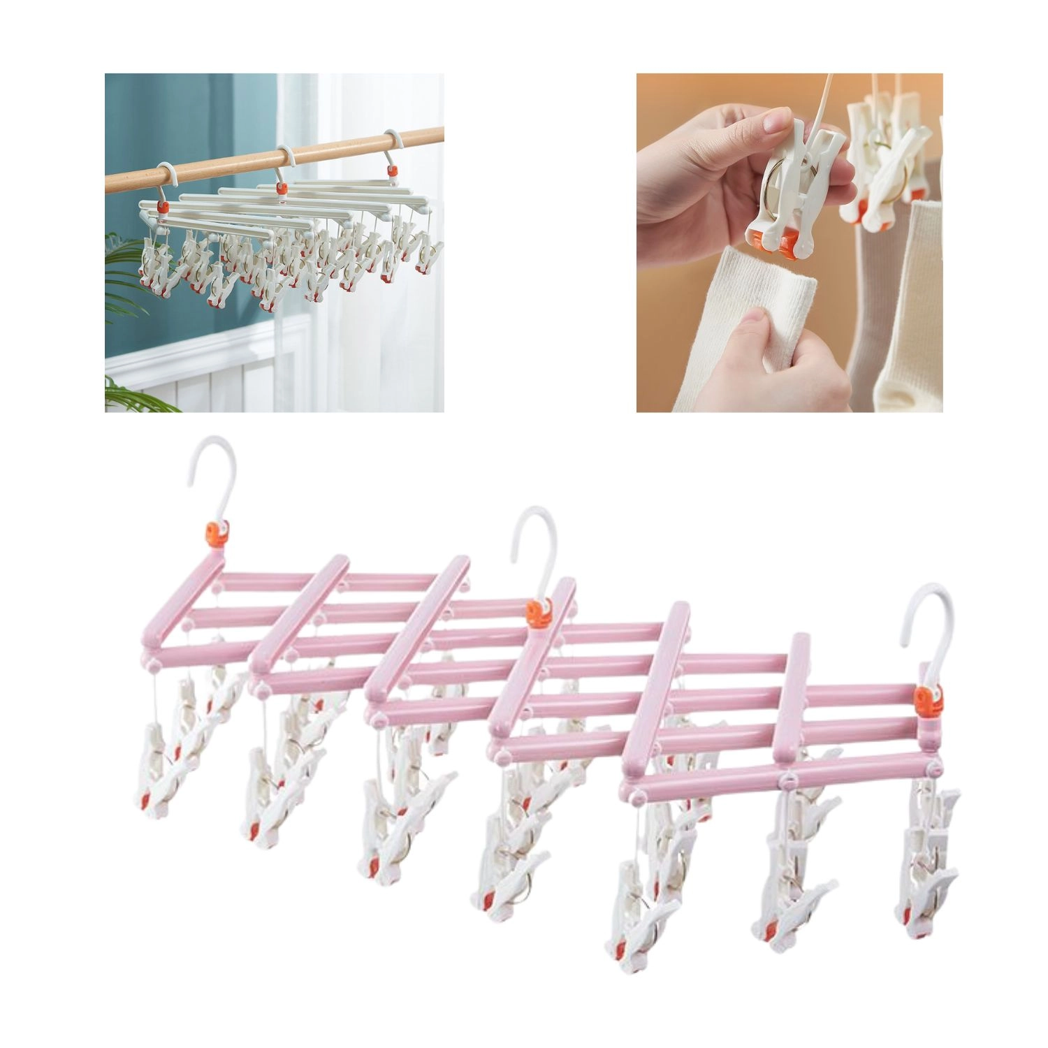 Séchez chaussettes, sous-vêtements ou vêtements pour enfants en une seule fois. Les clips avec perforation antidérapante maintiennent fermement sans abîmer les tissus.