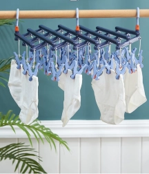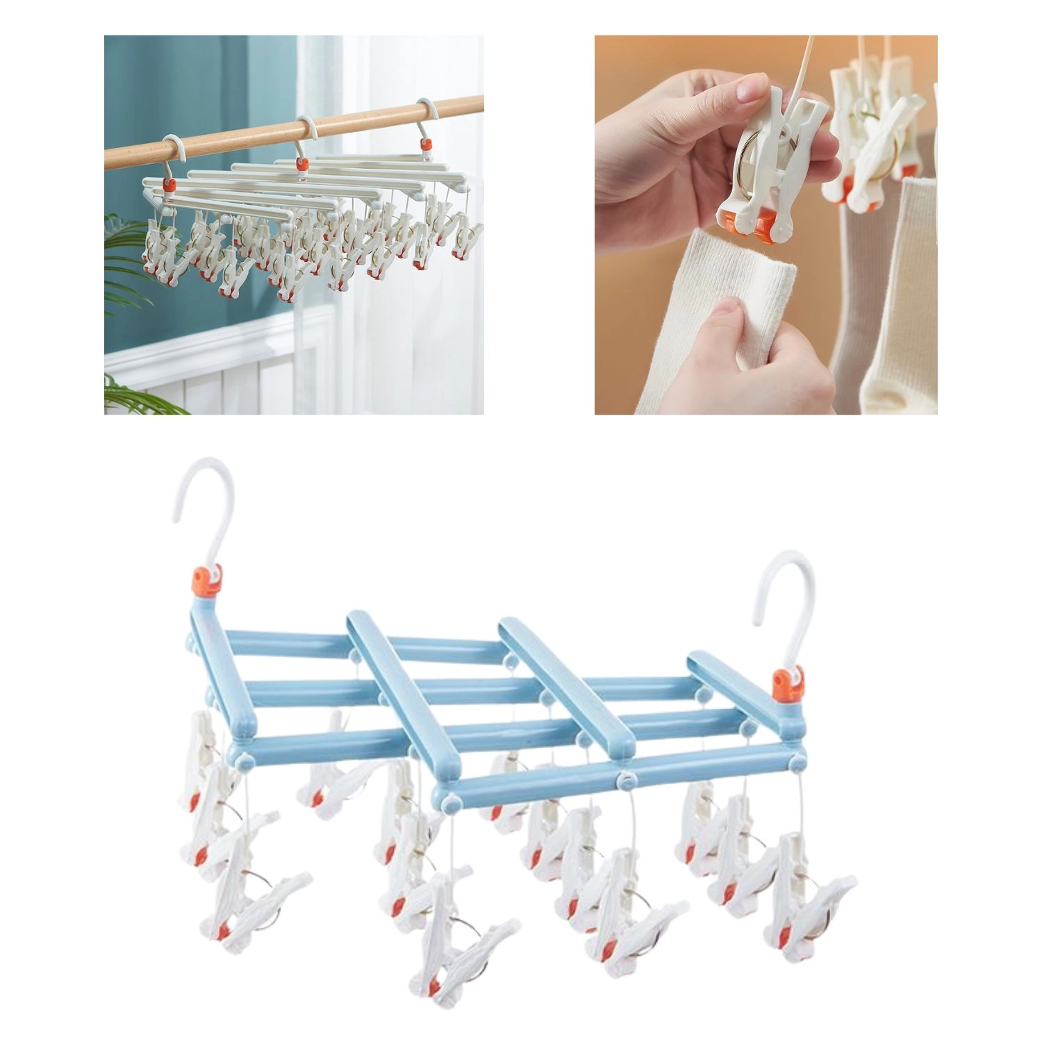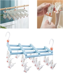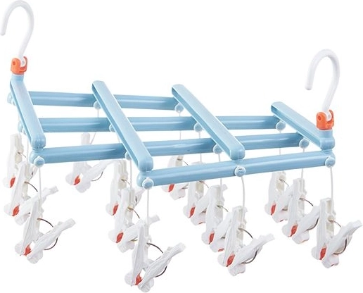 Séchoir pliant suspendu avec pinces, 14 clips, bleu clair