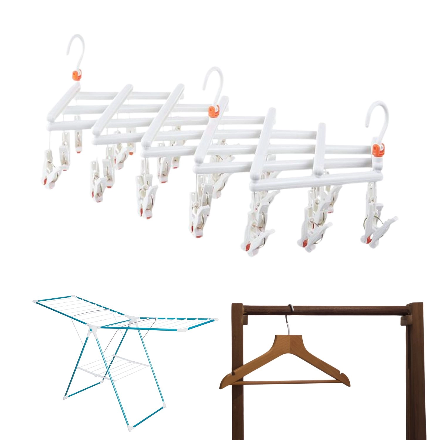 Séchoir pliant pour linge avec pinces, 29 clips, blanc