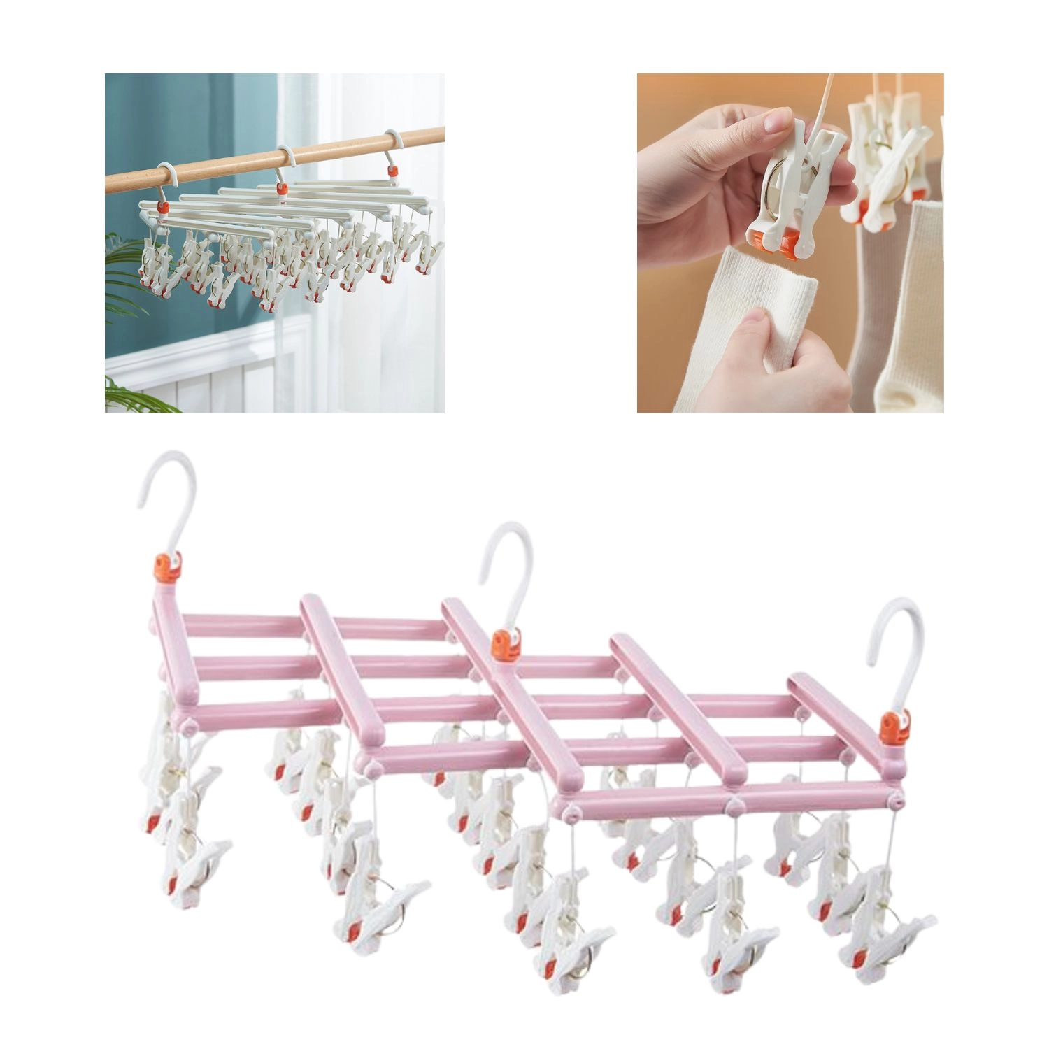 Vous cherchez une solution intelligente pour sécher les petits textiles ? Ce porte-étendoir pliable avec 19 pinces offre un séchage efficace des chaussettes, sous-vêtements et vêtements pour enfants, que ce soit sur le balcon, dans la salle de bain, sur un séchoir ou en voyage. Grâce à son crochet pivotant avec verrou, il se suspend facilement presque partout.