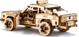 L’assemblage se fait sans colle et les pièces s’emboîtent avec précision. Le résultat est une miniature résistante de voiture de police, parfaite sur une étagère ou un bureau. La marque WOODEN CITY veille en outre à l’écologie – le produit est emballé sans plastique.