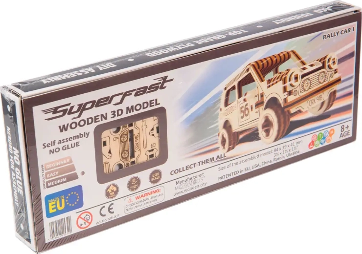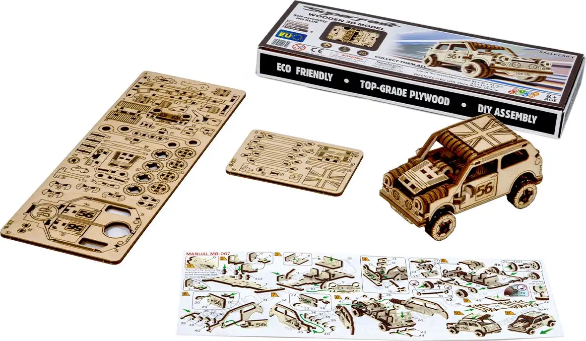 Ce modèle mécanique 3D de voiture de rallye est un excellent choix pour tous les amateurs de création. Grâce à la découpe laser précise du contreplaqué de bouleau, les pièces s’emboîtent en douceur et vous profitez d’un agréable moment de détente et du développement de votre créativité lors d’un montage sans colle. Le modèle fini séduit par ses détails réalistes, de la calandre au numéro sur les portes, et devient un élément déco élégant pour une étagère ou un bureau.