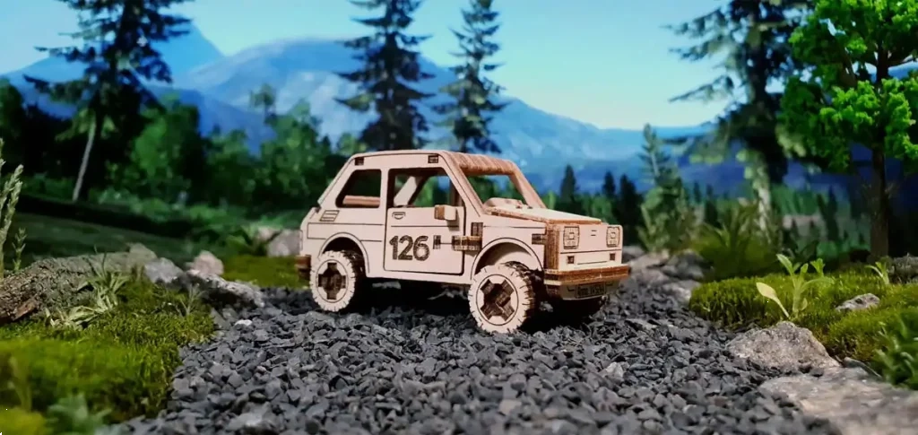 Le résultat est une miniature détaillée avec une texture de bouleau naturelle, que vous pouvez personnaliser avec des couleurs. Une excellente idée de cadeau pour les passionnés d’automobiles, de technologie et de projets DIY.